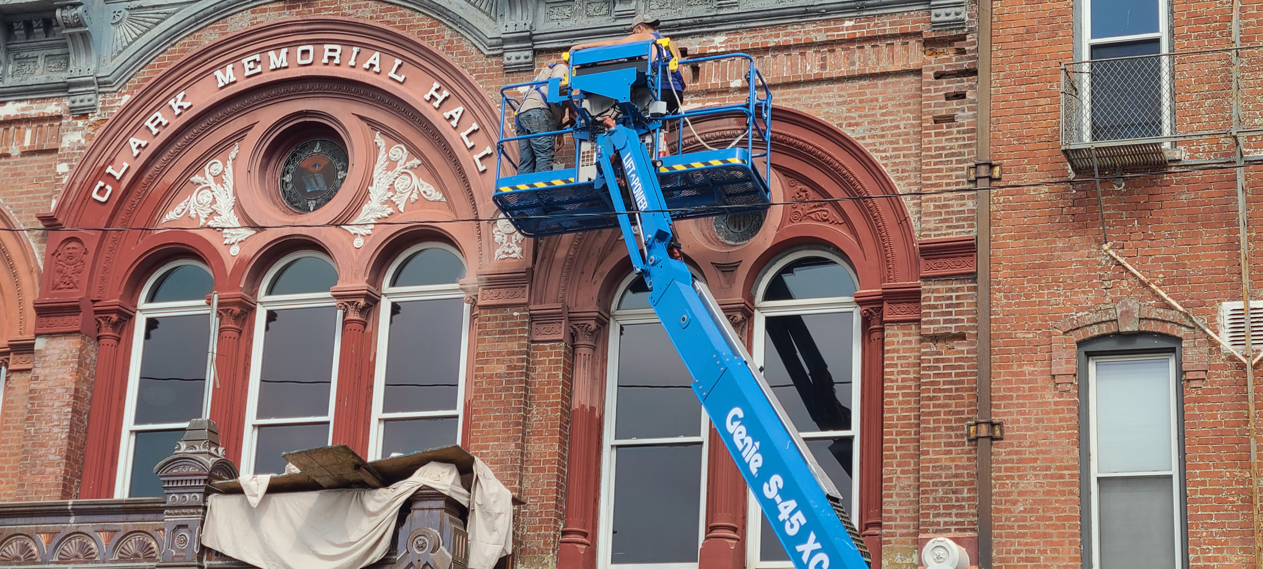 When we purchased Clark Memorial Hall, the exterior façade was deteriorating quickly. Although at first glance things didn’t look that bad, as you got closer you started seeing all kinds of problems.Pre-2019